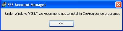 Abaixo de Windows Vista, não recomendamos instalar em C:\Arquivos de programas.