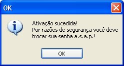 Se a ativação for bem sucedida, receberá esta mensagem, clique em OK.