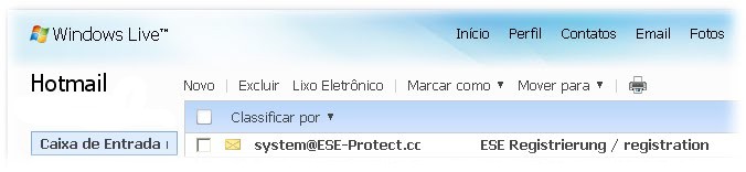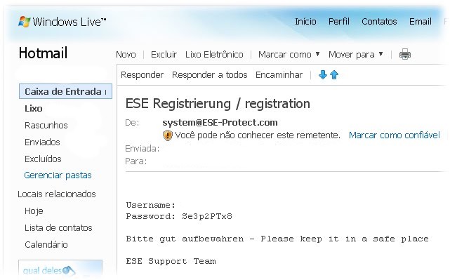 Abra seu email para obter sua senha de ativação, veja um exemplo dos e-mails que a equipe do ESE lhe enviará: